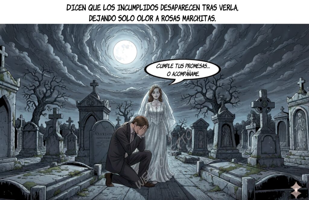 Dicen que en el corazón de Monterrey, entre cipreses y lápidas antiguas, aparece una figura vestida de blanco…