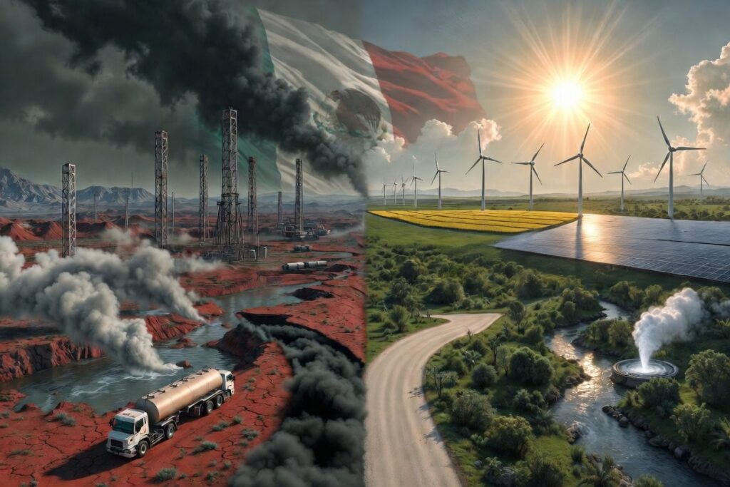 La lógica oficial es clara: usar esta técnica para reducir la dependencia del gas natural importado de EEUU, fortalecer a Pemex y abaratar costos industriales. Sin embargo, la realidad geográfica y climática del país cuenta una historia distinta. El fracking requiere millones de litros de agua dulce en regiones que ya sufren un estrés hídrico crítico y conlleva graves riesgos sísmicos y de contaminación.